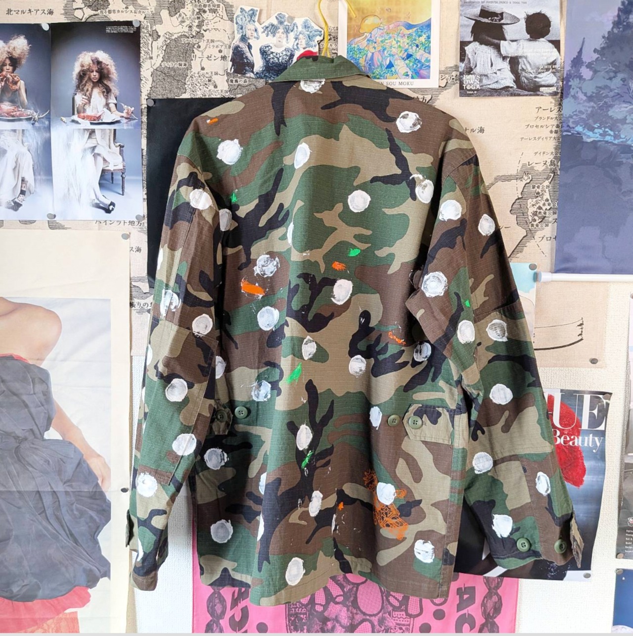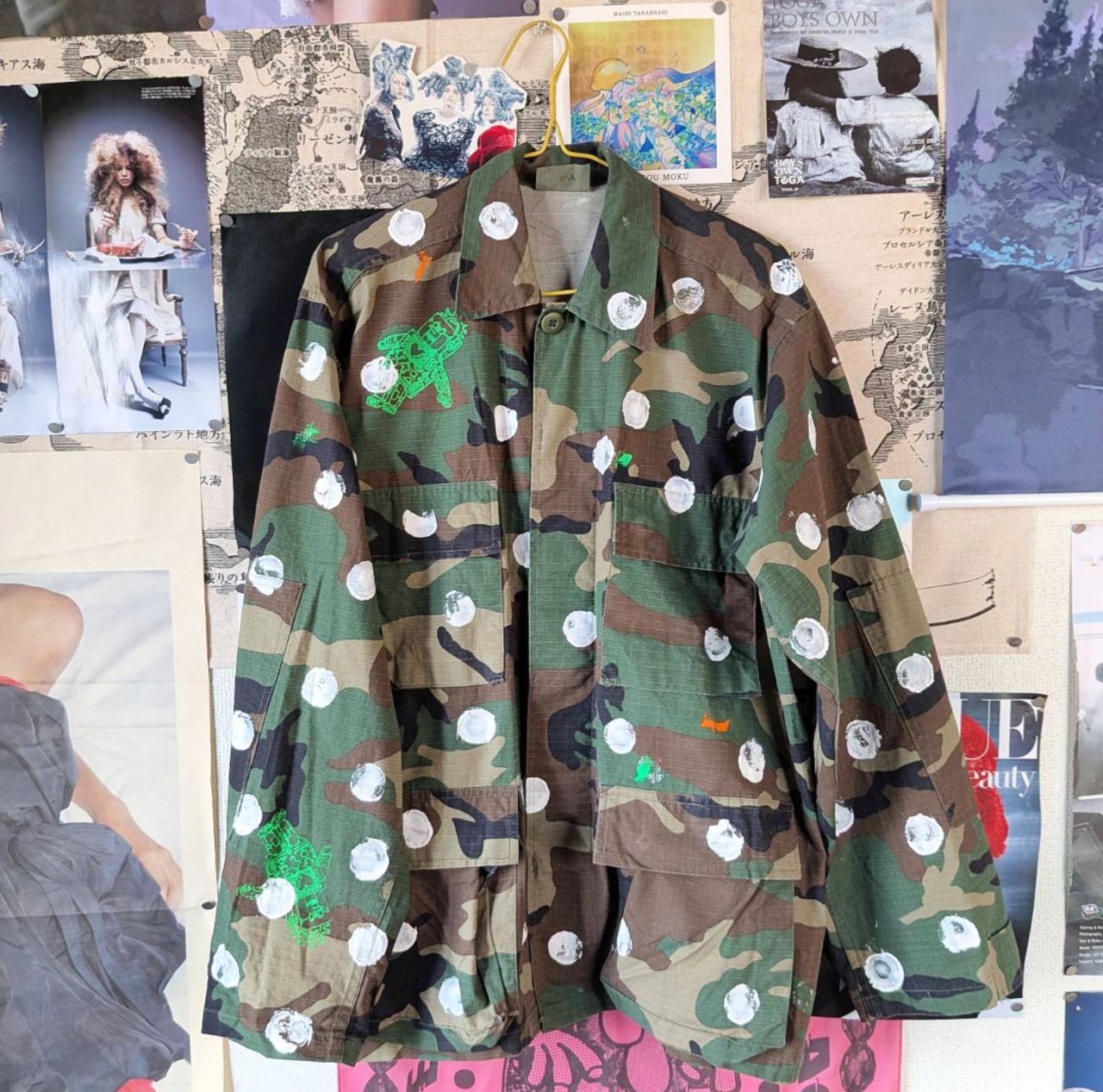 古着の米軍のブルゾンにロボットのプリントを施した1点ものになります。