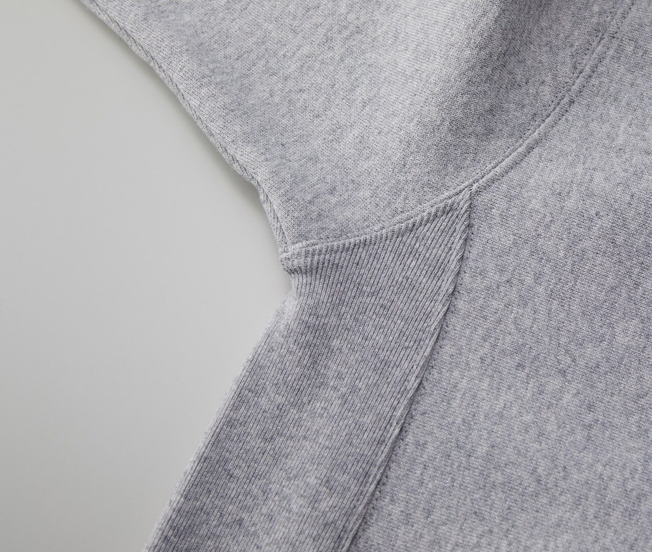 身頃の生地目は横取り、脇はリブ生地のサイドパネル仕様で、オープンエンド糸の持つ独特の風合いにより、味のある「ムラ感」と「ザラ感」を楽しむことができる、スウェット好きも納得のボディを使用した厚手フーディーです。