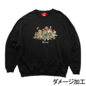 髑髏と花のコラージュをプリントしたビッグシルエットスウェットシャツです。
