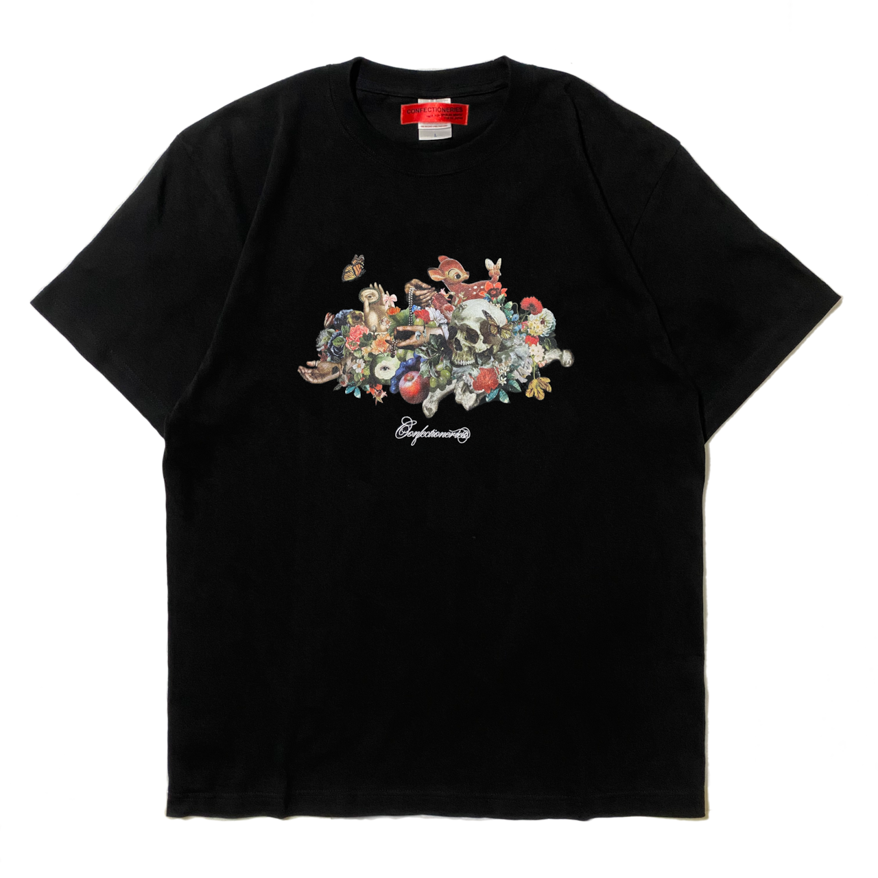 おどろおどろしくも美しく、ハズしの効いた可愛らしさと落ち着きもあり、大人でも楽しめるプリントTシャツです。