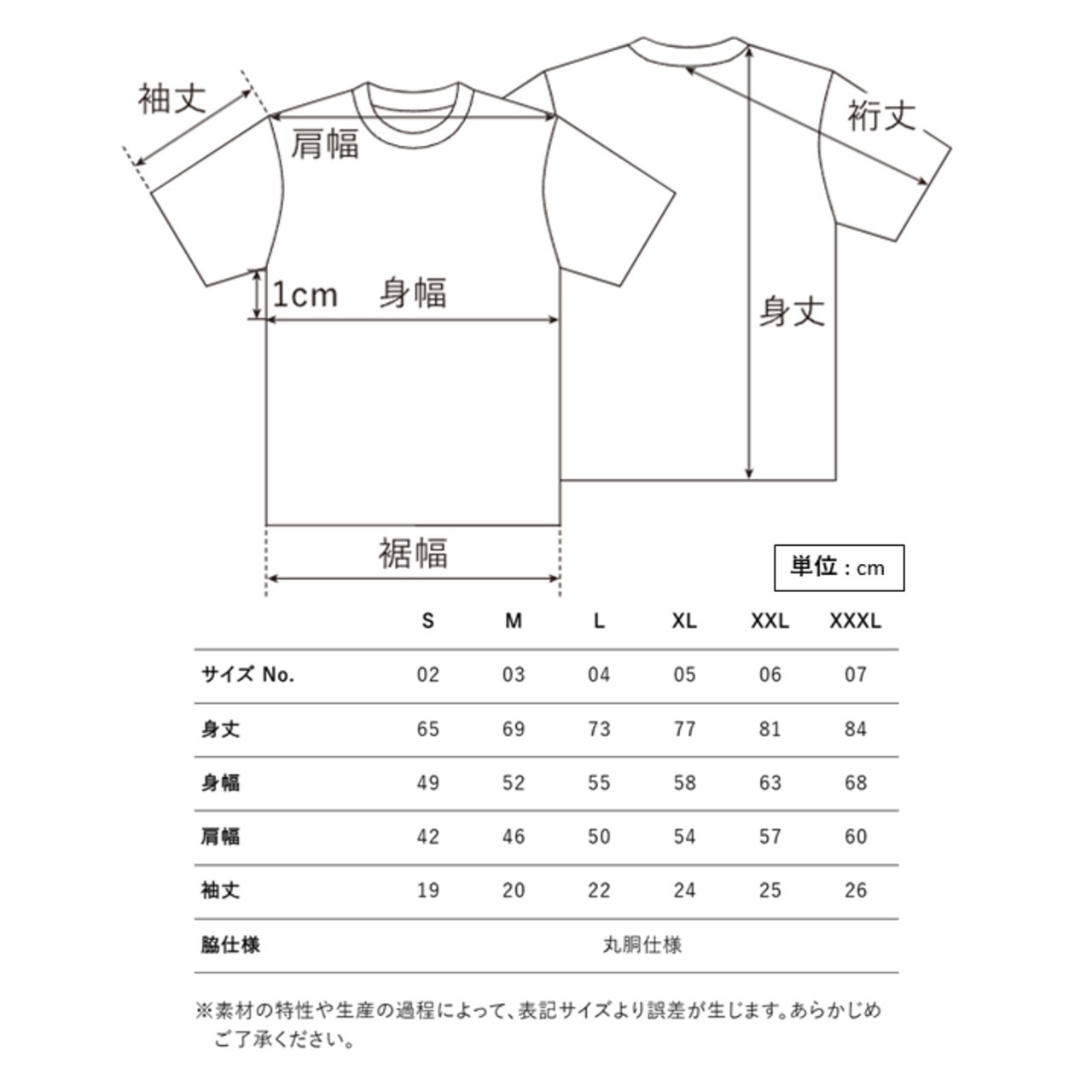 ※掲載画像のサイズはLになります。プリントの大きさ、バランス、位置は各サイズによってやや異なります。