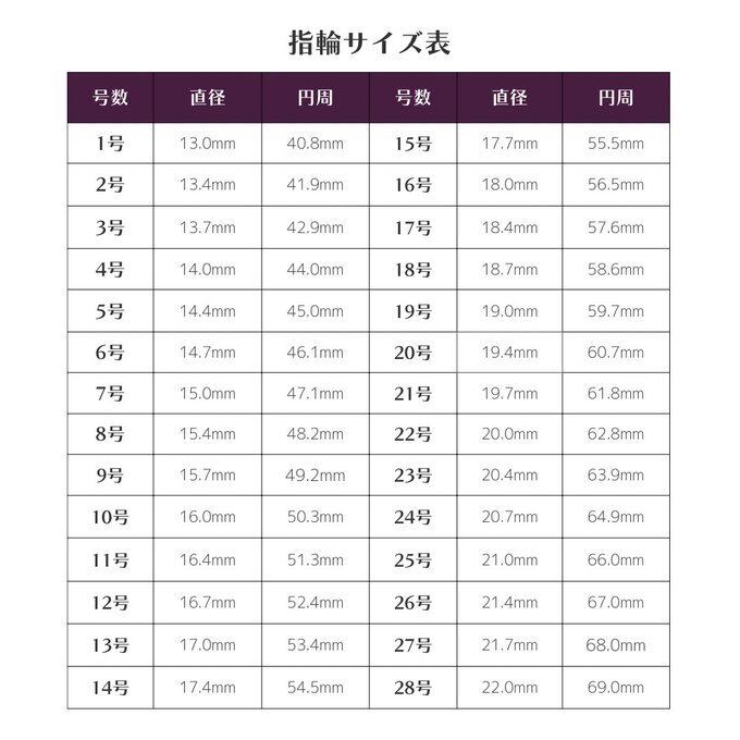↓指輪のサイズ表/サイズの測り方はこちらを参照してください。