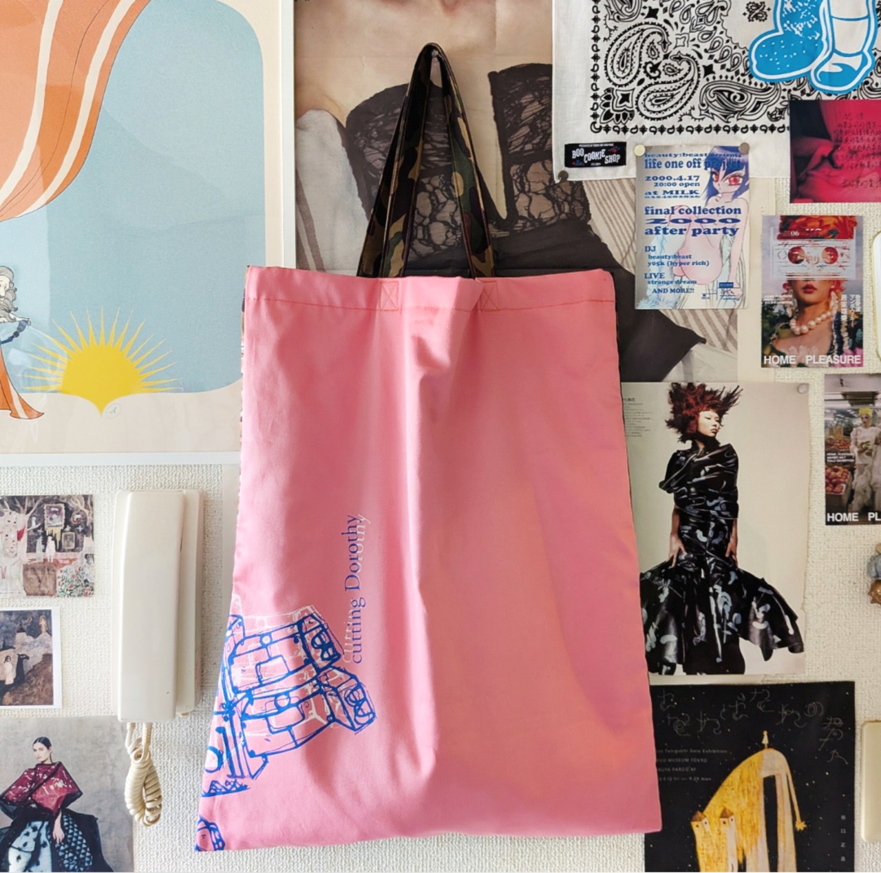 持ち手を回すように捻り結べば巾着としてもご使用いただけます
