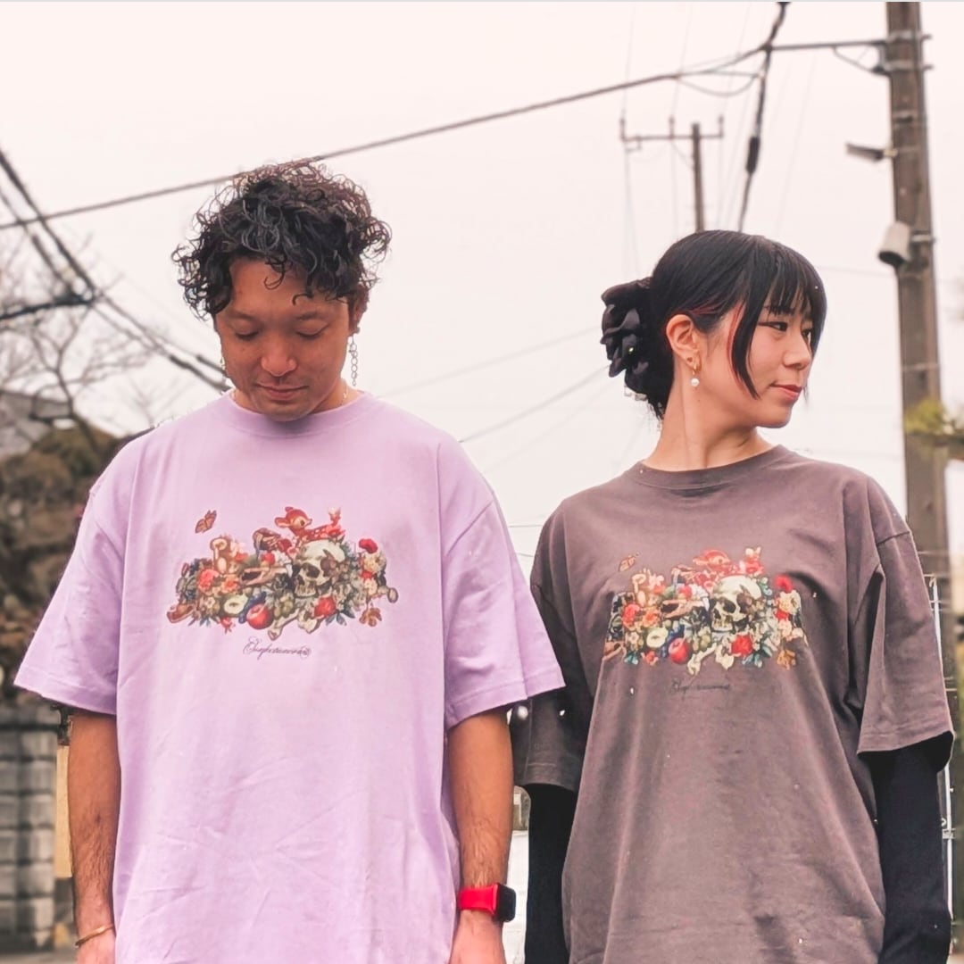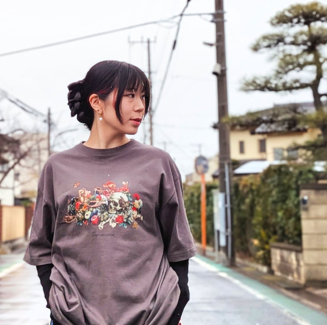 おどろおどろしくも美しく、ハズしの効いた可愛らしさと落ち着きもあり、大人でも楽しめるプリントTシャツです。