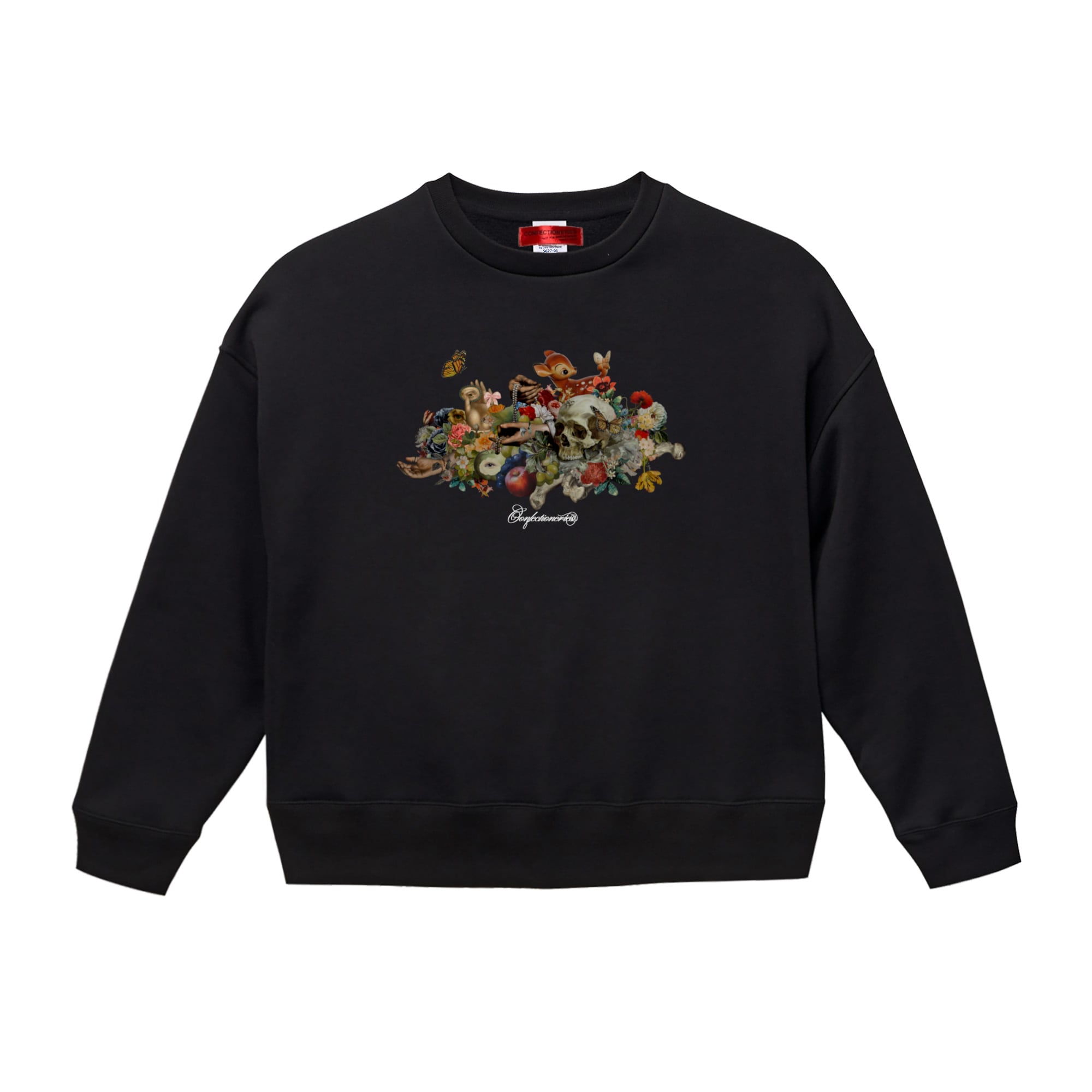 Skull&Flowers (ブラック) BIGシルエット スウェットシャツ