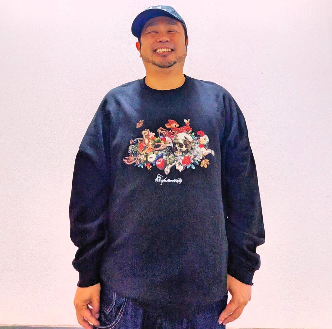 おどろおどろしくも美しく、ハズしの効いた可愛らしさと落ち着きもあり、大人でも楽しめるプリントスウェットシャツです。