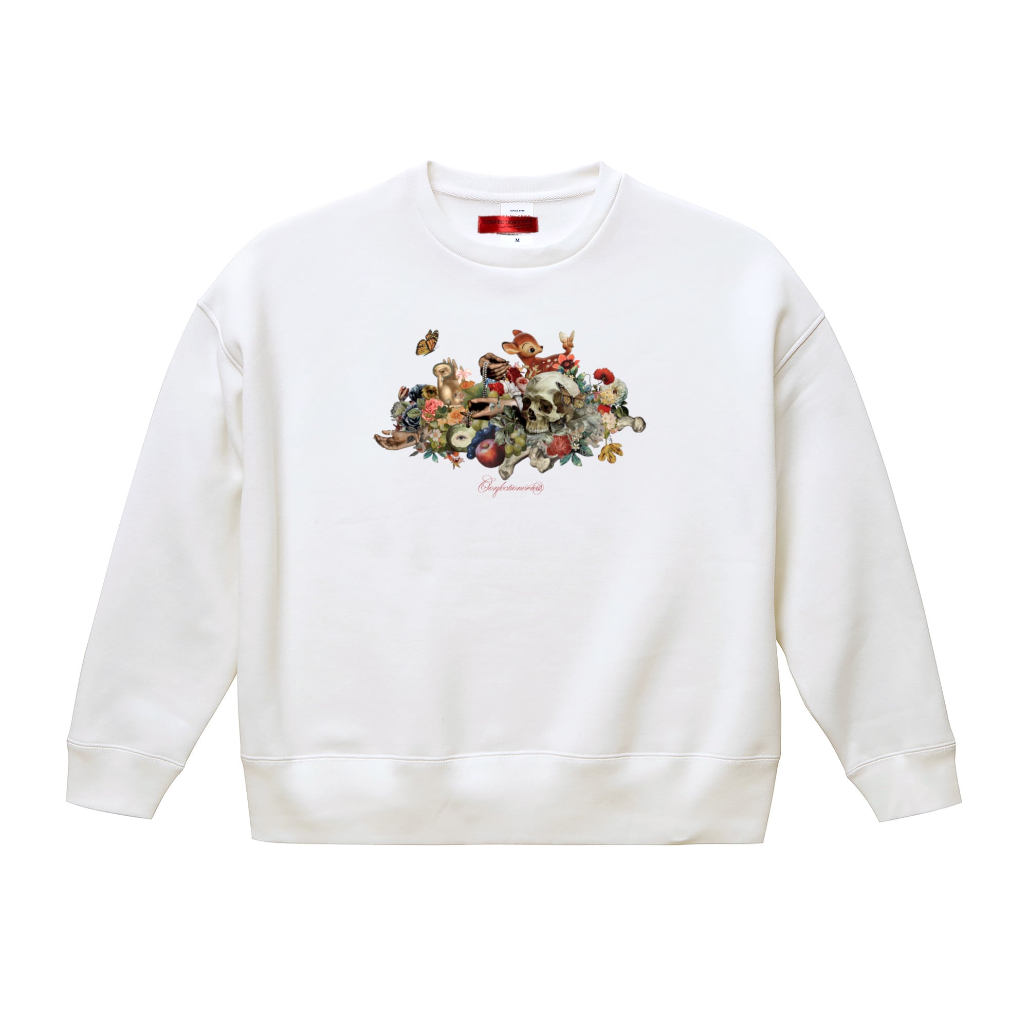 Skull&Flowers (ホワイト) BIGシルエット スウェットシャツ