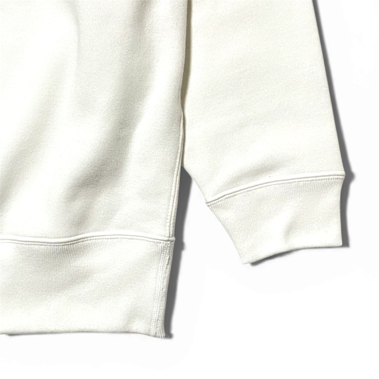 ‐袖口のリブと裾口のリブ、身頃のシームラインは堅牢なダブルステッチ始末。