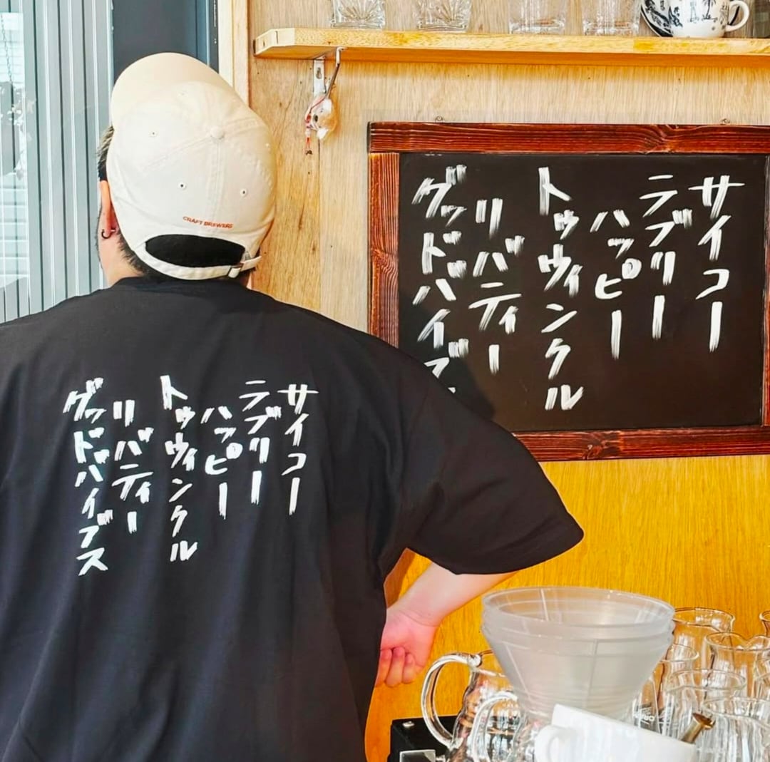 「お店でお食事したお客様に、こんな気持ちで帰って頂きたい」と店内の黒板に書かれた”社訓”をプリントした1周年Tシャツが可愛かったので・・・