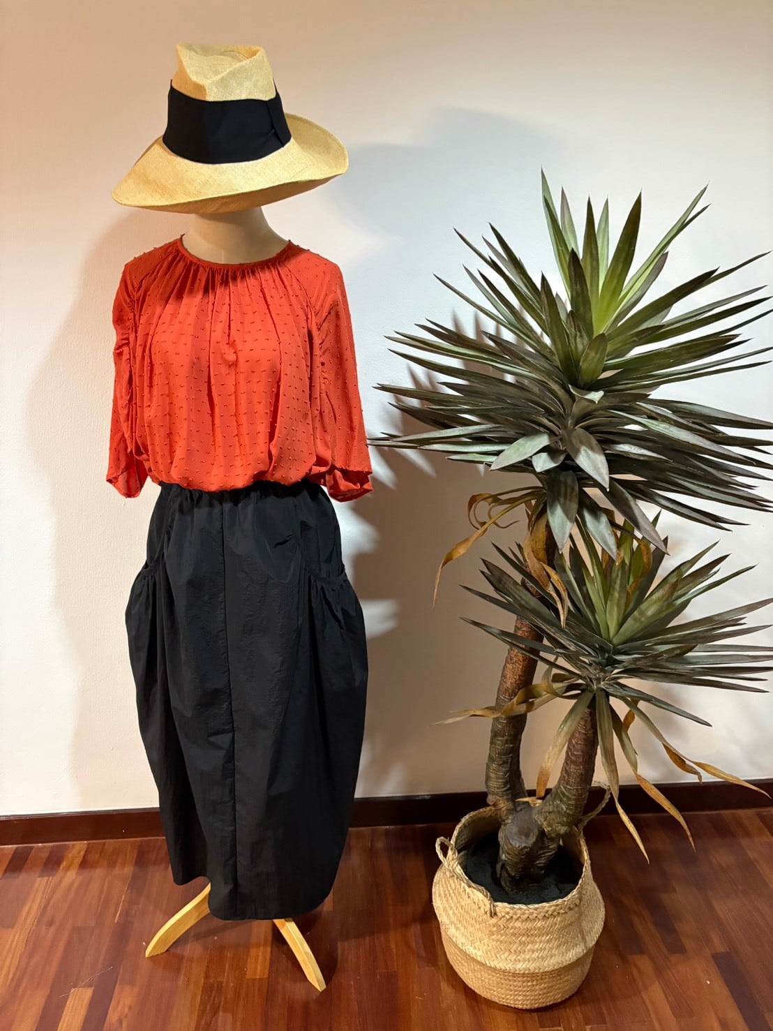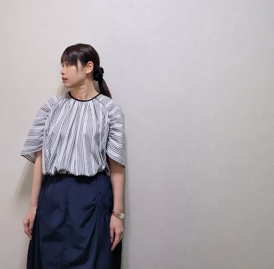 肩・袖にギャザーがたっぷりで、生地をたっぷり使っている割には涼しく着用できるのが特徴です。