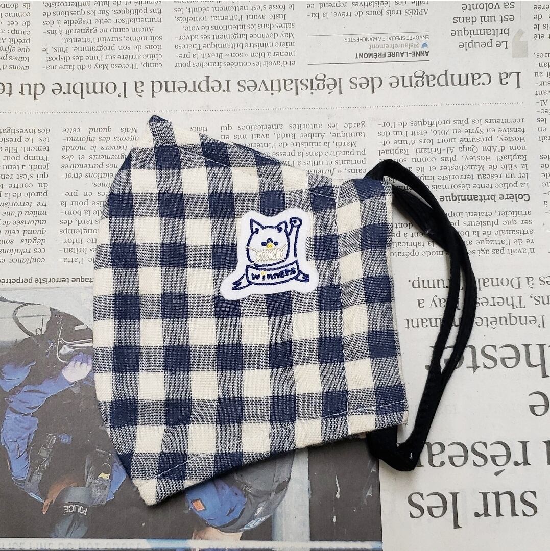 "コロナに勝ったネコ"のマスク(ネイビーチェック)