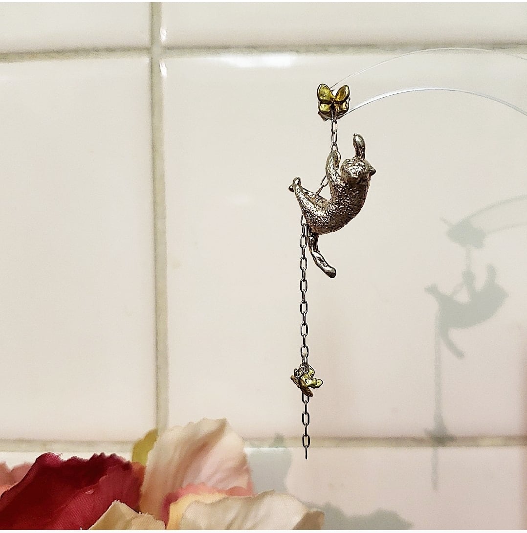 HOASHIYUSUKE(ホアシユウスケ)の、蝶と遊んでいる猫のピアスです。