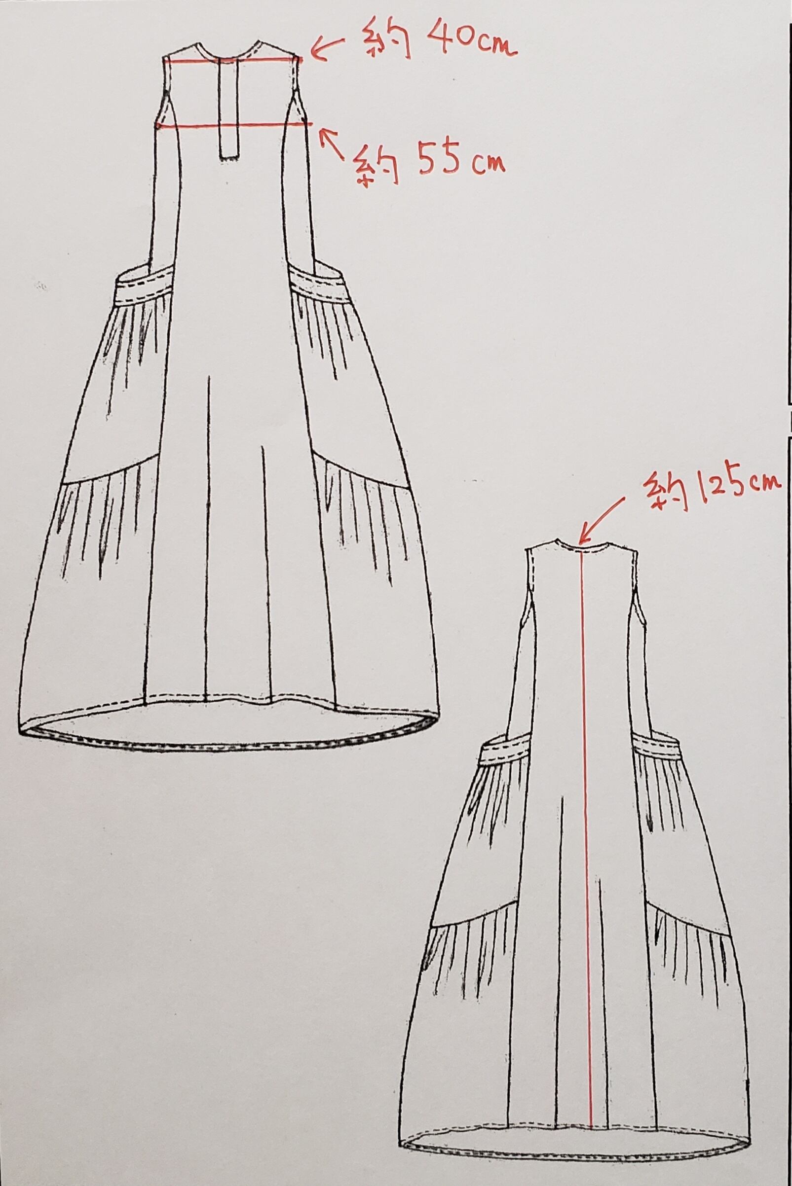 広がる裾と、大きいポケットが特徴のティアードスカートです。