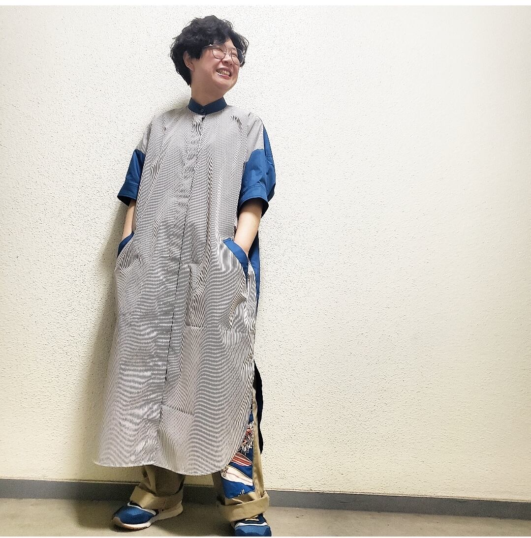 前身頃のストライプ生地はポリエステルです。シワになりにくいと思います。