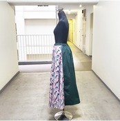 ウェストはゴムなので、少し後ろのグリーンの生地を見せても良いかもですね♪