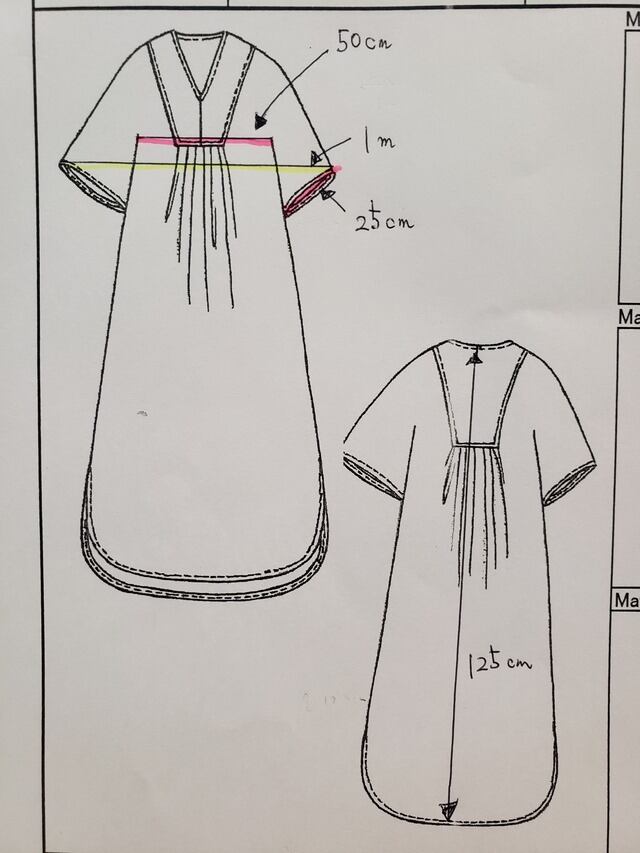 完成したワンピースは、他のお客様からも「かわいい!!」「あ、カフタンの形でベージュもいいかも!!」「この組み合わせ良いですね!?」と大好評。
