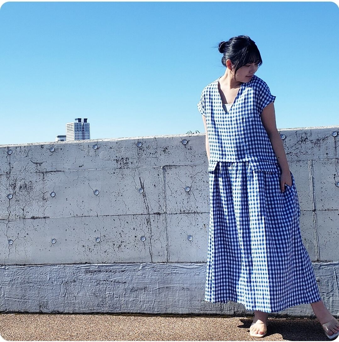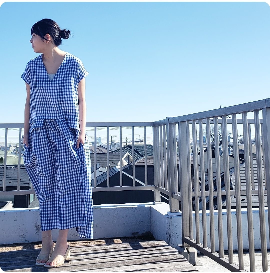 ギンガムチェックの生地はリネン。