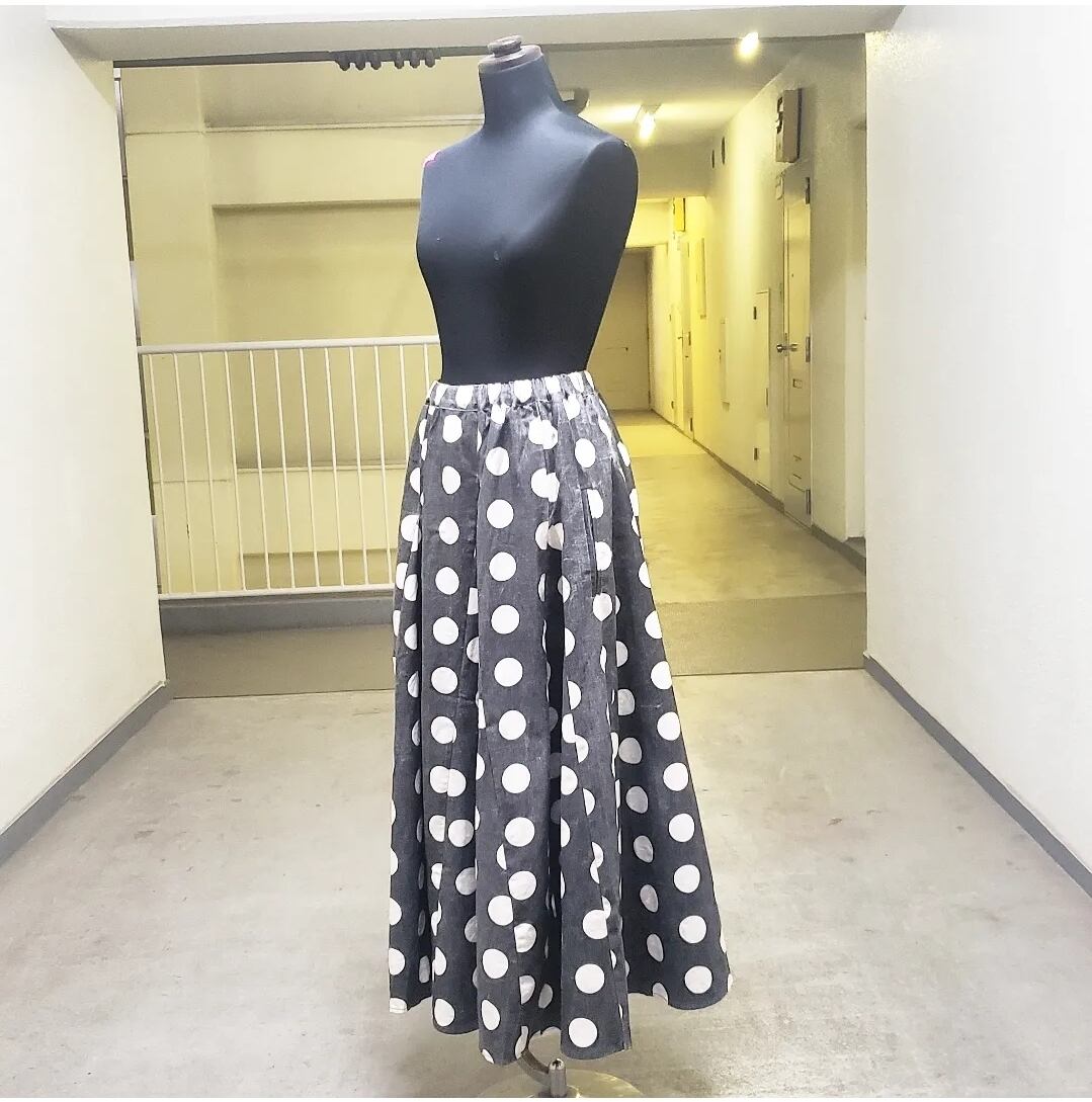 ウエスト周りはスッキリ見えますが、裾向かって広がるようになっています。